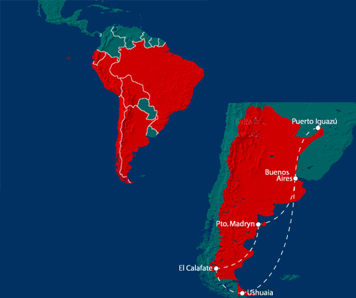 Onze reis in het kortArgentinië, en dan met name het zuidelijke Patagonië, stonden al lang op ons lijstje van landen waar we graag heen wilden. Onze verwachtingen zijn geheel waar gemaakt tijdens onze reis door Argentië en Chili. De natuur is heel veelzijdig, met gletsjers, bergen en kale vlaktes in het zuiden tot aan regenwoud met watervallen in het noorden. In Buenos Aires zie en hoor je vooral veel Tango (en Maradona). De mensen zijn uiterst vriendelijk en behulpzaam geweest en daardoor hebben we zelfs onverwachts tijdens onze laatste avond een tangoles gevolgd! Omdat het land erg groot is (3000km van Buenos Aires naar het zuiden), hebben we veel afstanden met binnenlandse vluchten afgelegd. Op deze site kun je een selectie van onze foto's zien. Klik op een plaatsnaam voor de foto's van die streek. |